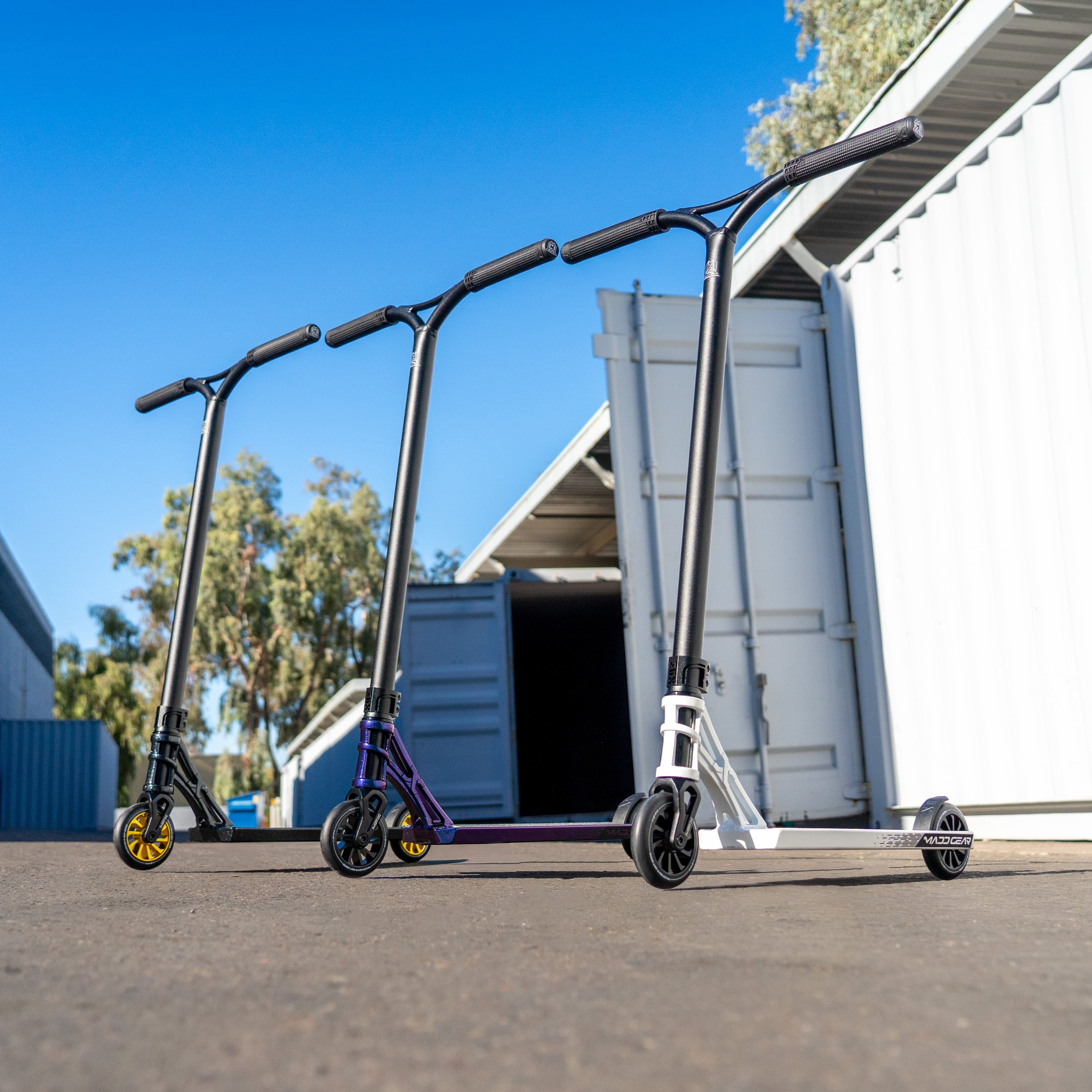 From first tricks to world championships, Madd Gear Pro Scooters are built for riders who live to push their limits. We pride in quality, affordability, and innovation. Designed, tested, and trusted by the pros, our scooters deliver the durability, performance, and style to keep you rolling and mastering tricks using cutting edge materials and technology.